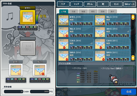 合成には成功率が設定されており、失敗しても成功しても合成元のパズルは消滅します。